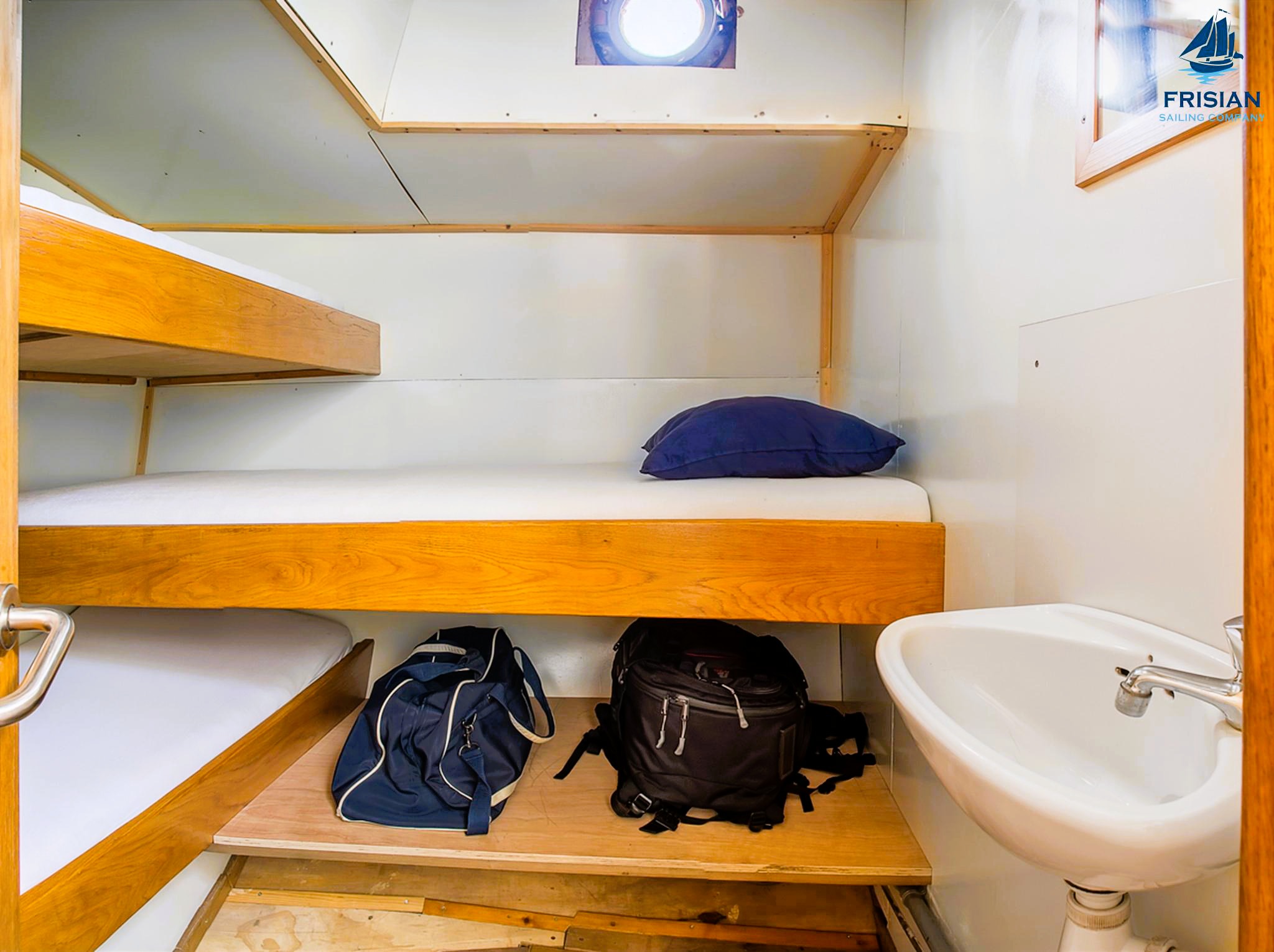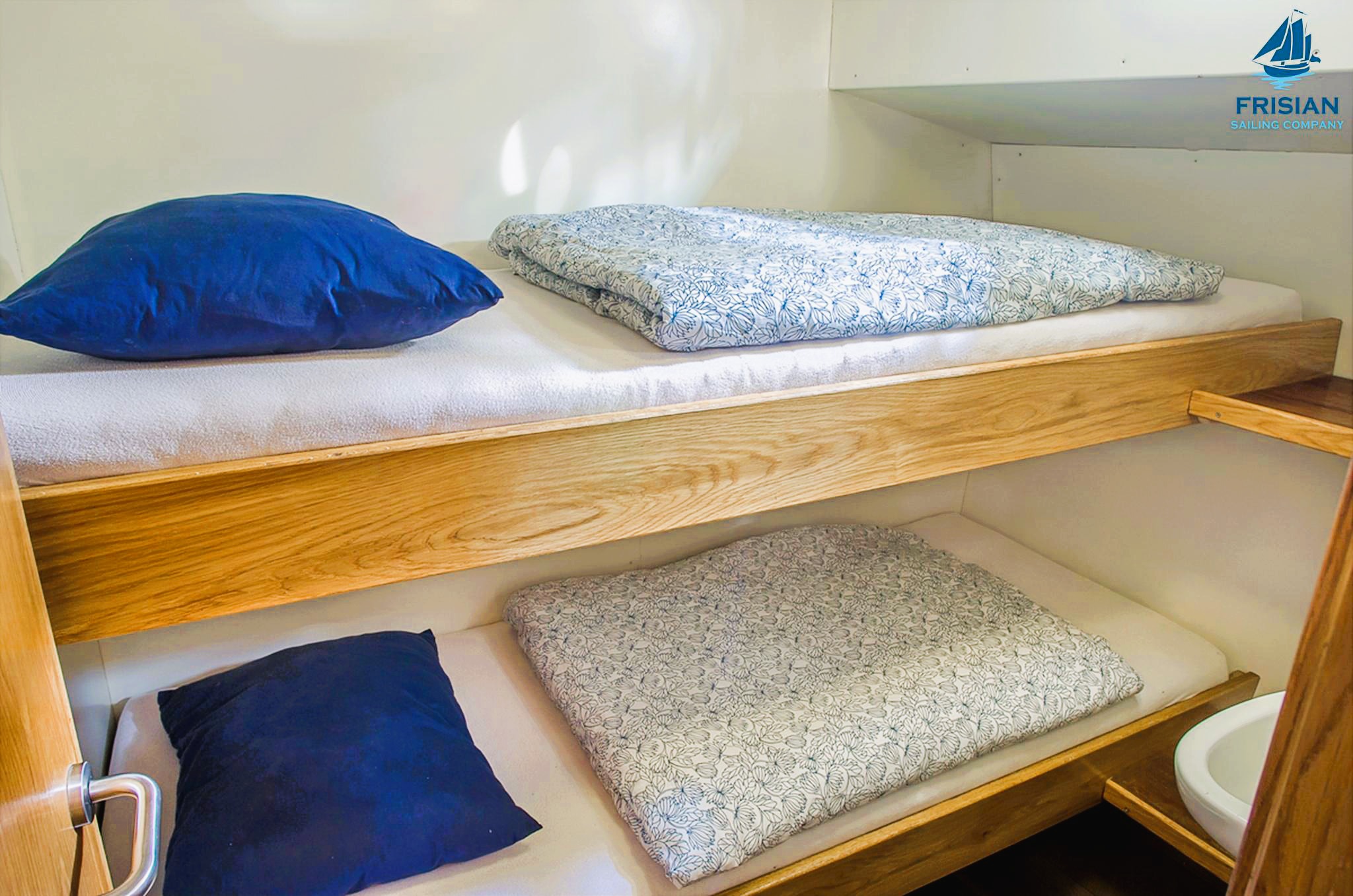 Die 7 Kabinen sind aufgeteilt in 3 Doppelkabinen, 2 Dreibettkabinen und 2 Vierbettkabinen. Somit können insgesamt 20 Personen auf der Emma übernachten.